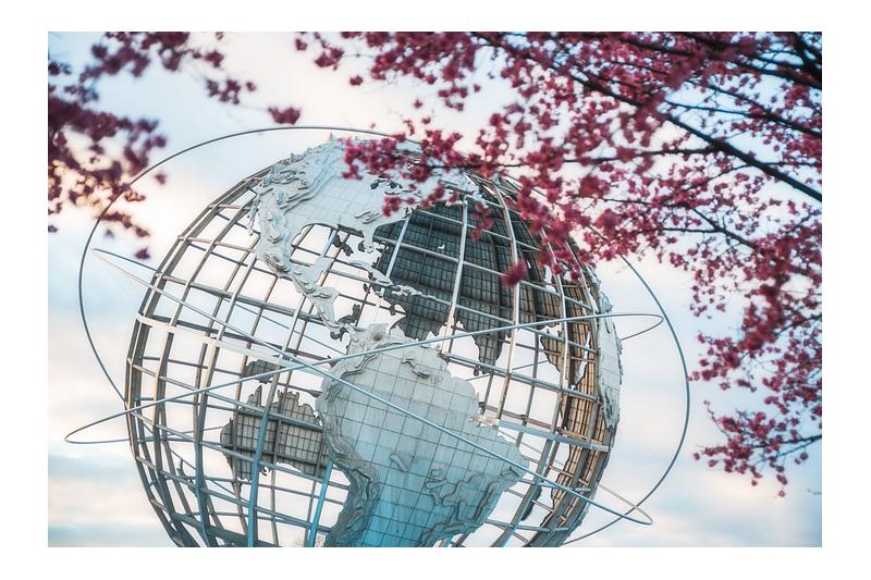 My photo, "Queens in Spring," captures the iconic Unisphere in Flushing Meadows Corona Park, Queens, NYC. This 140-foot-tall stainless steel structure, originally a symbol of the 1964 World’s Fair, still stands as a landmark of Queens. Surrounded by beautiful cherry blossom trees, which bloom in a stunning pink for just a week each spring, the Unisphere takes on a timeless beauty. In this image, I positioned myself behind the blooming trees, using them to frame the Unisphere as the warm setting sun casts its light on the structure.