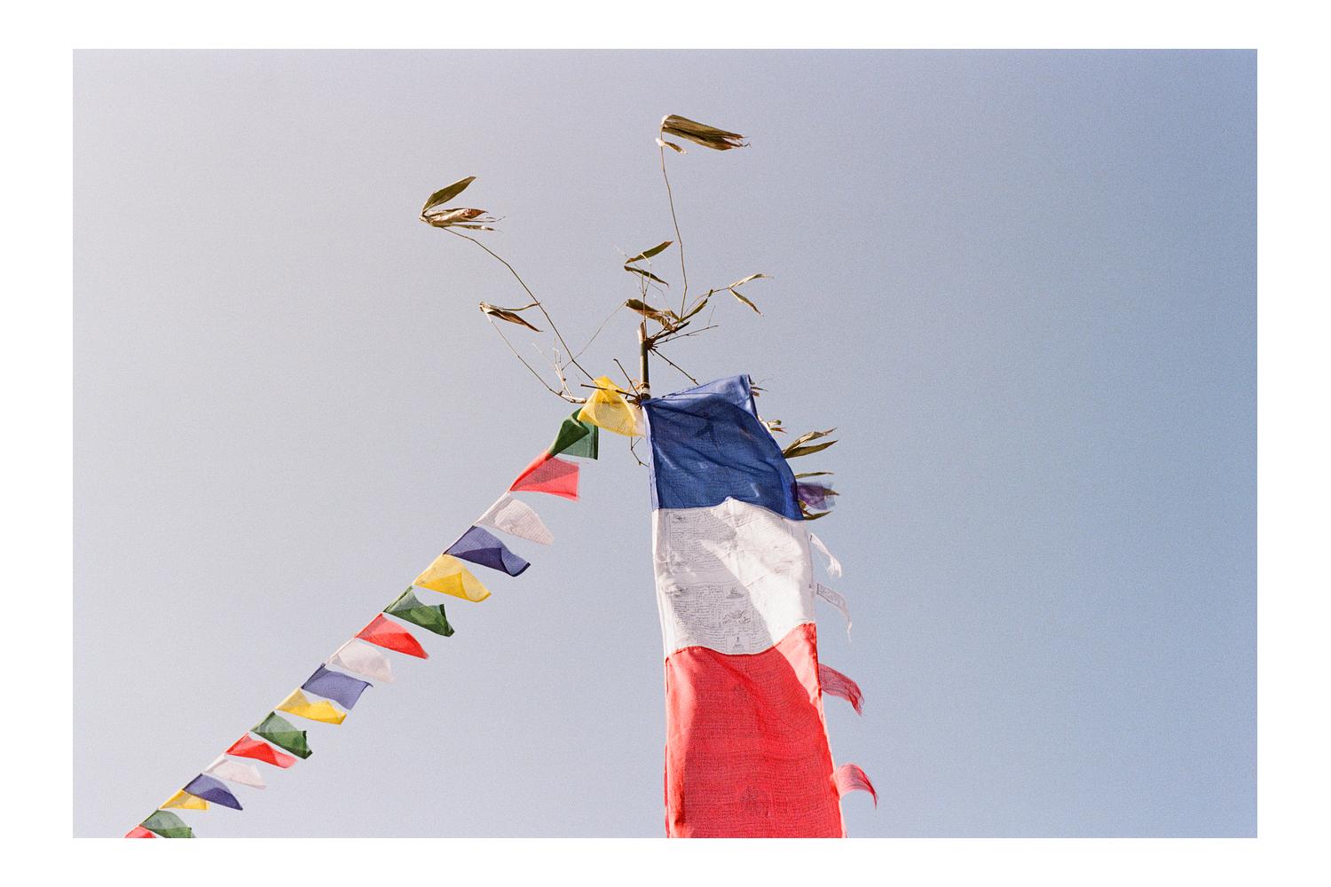 My photo, "Tibetan Prayer Flags," was shot on Kodak ColorPlus 200 film. In Nepal, these prayer flags are a common sight, but the simplicity of this particular scene caught my attention. A bamboo shoot, with its dried leaves still clinging to it, stretches upward to hold the flags against the sky. The flags symbolize peace, compassion, strength, and wisdom.