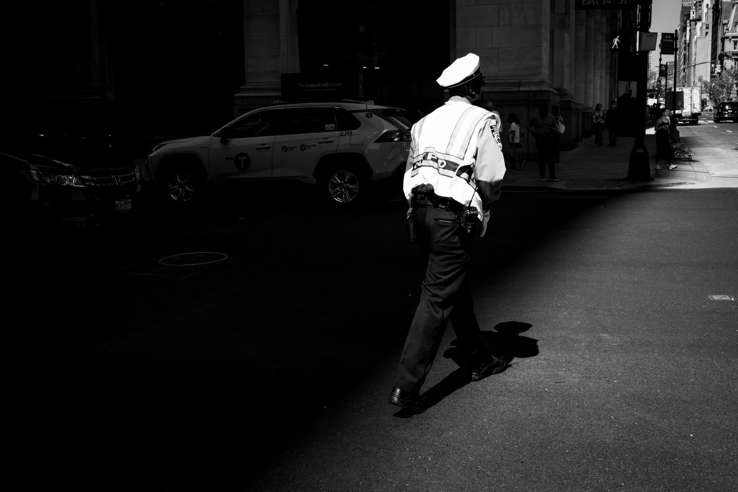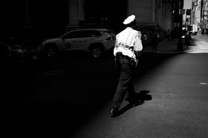 My photo "Stepping into the Light" was taken in 2023, in New York City. As I was crossing the street behind this cop, I saw him start to step into the light, and I was fast enough to capture this image. One of my only photos I would actually call street photography. *This photo was exhibited in the 2025 group show, "Urban", in Glasgow, Scotland, United Kingdom.