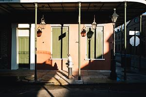 My photo "Morning Shadows" was taken in the French Quarter of New Orleans. It's easy to fall in love with all of the colorful buildings in this city, but I wanted to capture a photo of them that had more interest. Walking around early one morning, with the sun still low in the sky, I noticed these interesting shadows that would cast on the color making it a much more dynamic scene. The lack of people on the streets also helped with the photos simplicity.